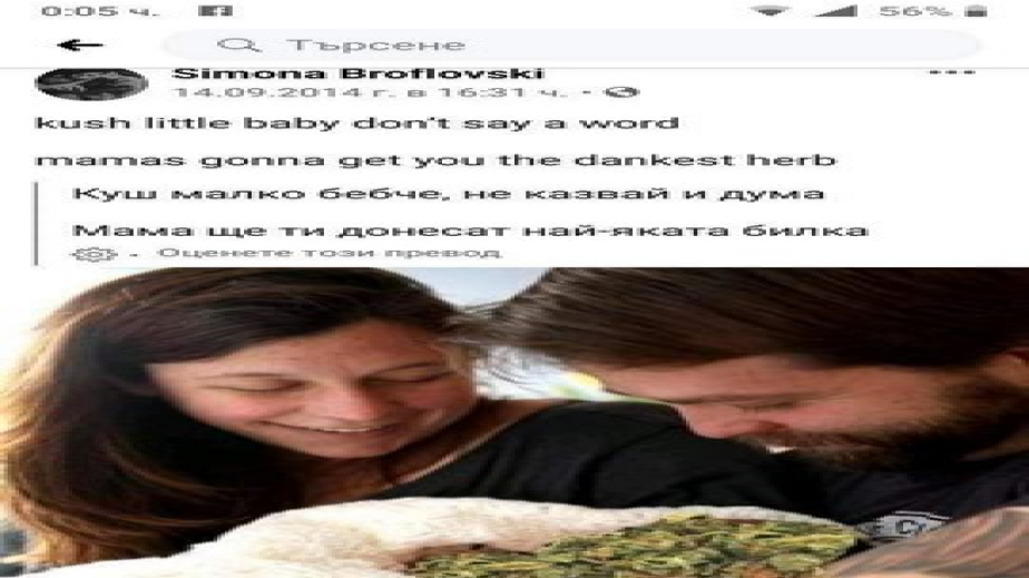 Преди часове в мрежата изтекоха снимки на въпросната девойка, която изглежда потресаващо. Лицето й е пробито на няколко места от пиърсинг, а физиономиите, които прави, са откровено наркомански. Профилът на момичето отврати с фотос на женско лице, в чиято уста е натъпкано сурово месо. Както и колаж на млади родители с "бебе канабис".