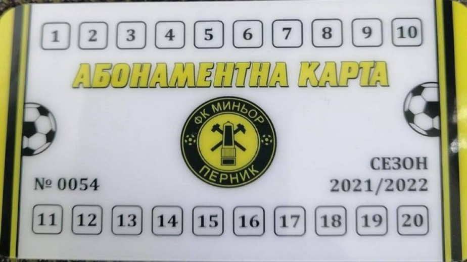 Сезонните абонаментни карти за домакинските мачове на Миньор за сезон 2021/22 вече са в продажба от днес. Пропуските са с цена 55 лева и могат да бъдат закупени в сладкарница "Енерджи" (бившата сладкарница "София") в центъра на Перник. Притежателите на карта ще могат да наблюдават на преференциална деветнадесет мача от първенството на Втора лига, а също така двубои за Купата на България, ако жребият определи домакинство на Миньор.