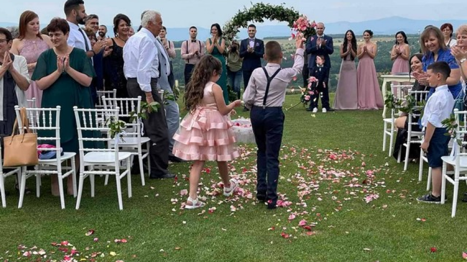 Сватбата е била от американски тип. Бели столчета били наредени на зелена поляна и отпред бил поставен олтар. Шаферките и шаферите пък били облечени в еднакви рокли и костюми. Романтично огнено шоу разтопило сърцата на младите влюбени и вдъхновило гостите. Младото семейство поздравили и гайдари.