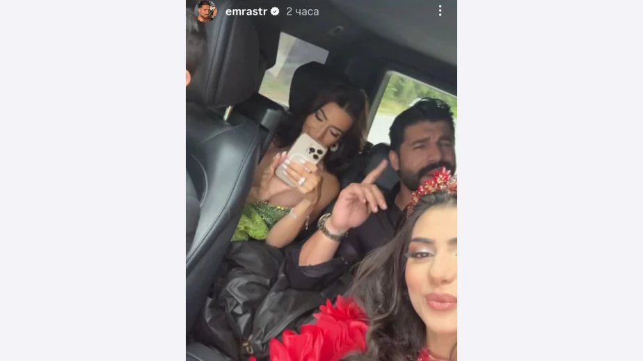 Новината бе разкрита чрез поредица от сторита в социалните мрежи, където фенове и последователи станаха свидетели на важния момент и емоциите от празника. Кадри от автомобила, с който младоженците и близките им пътуват, показват усмивки и добро настроение, а предпазните колани са забравени, разбира се. Булката беше в елегантна зелена рокля, а Емрах заложи на класически черен костюм. Заедно с тях в колата бяха брат му – Фики Стораро, който не скри радостта си и написа „Годежът на брат ми“, както и други близки и приятели.