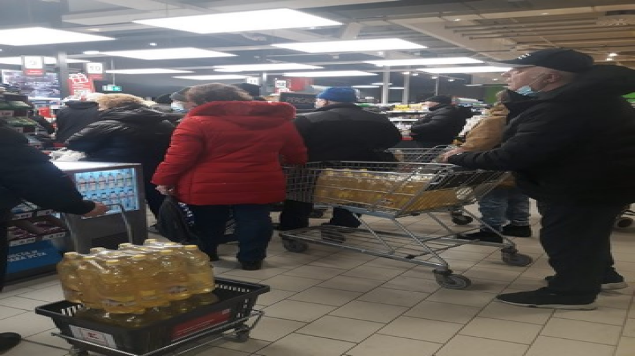 Още в 7 ч. сутринта перничани се юрнаха към търговската верига да се запасят с олио. Позволеното количество обаче било само по един стек.