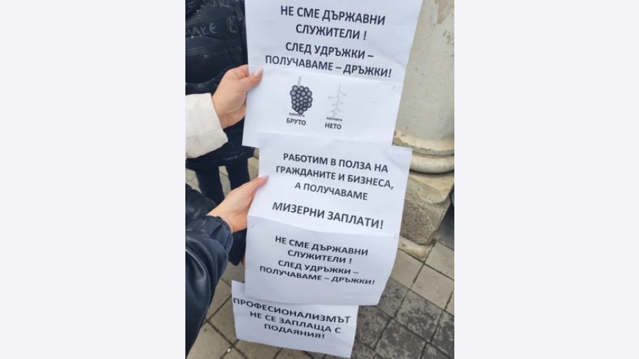 „Не прекъсваме трудовия процес по време на протеста. Има дежурни колеги, които продължават да обслужват клиентите“, допълниха служителите на „Местни данъци и такси“.