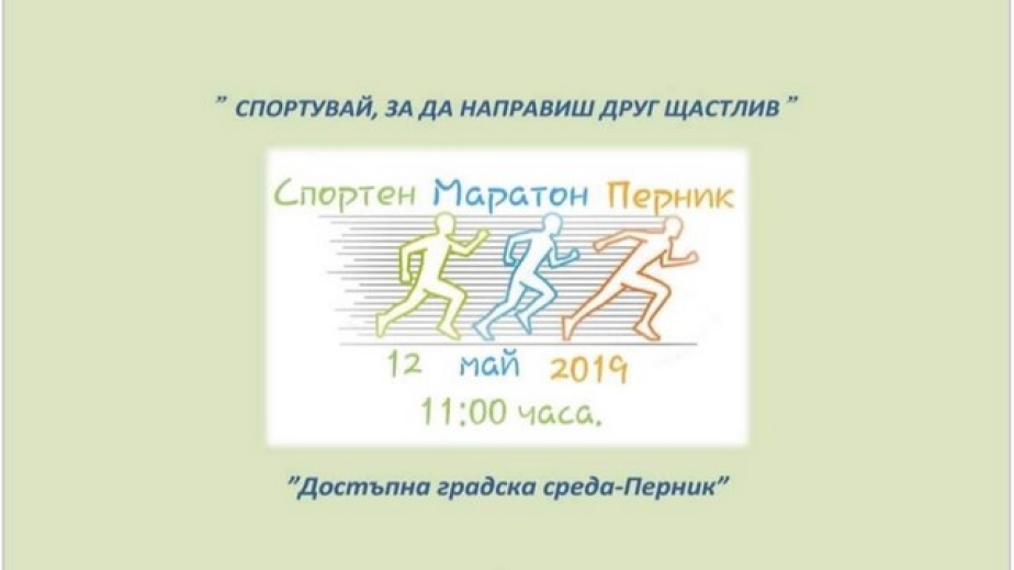 "Спортувай, за да направиш друг щастлив" , е мотото, което вдъхновява "Достъпна градска среда Перник", която организира Спортен Маратон Перник в подкрепа на градската среда за хората с увреждания, който ще се проведе на 12 май /неделя/ 2019г. от 11:00 часа при Кръглата сцена в Централен градски парк.