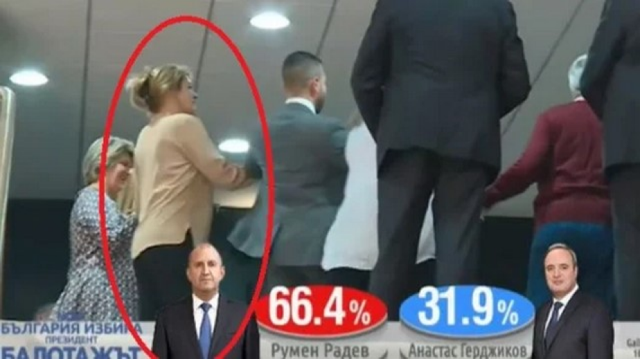 Кадри показаха как тя и други привърженици на Радев тропат хоро след победата му. Радева танцува под строгия поглед на гардове на НСО.