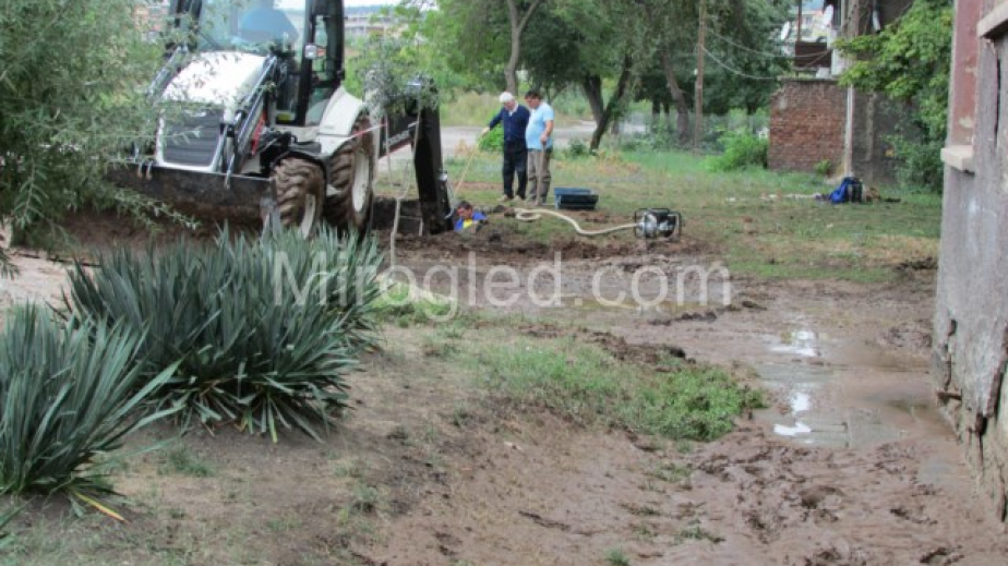 „Цяла нощ не сме спали, не можем да спасим нищо от мазето. Първи дойдоха от пожарната, но при бликащата вода нищо не можеха да направят докато не бъде спрян водопровода“, обяснява Мария. Съпругът й влиза в мазето, откъдето помпата източва водата.