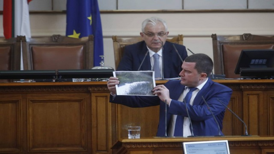 От парламентарната трибуна Станислав Владимиров показа снимки от двете последни замърсявания на р. Струма.