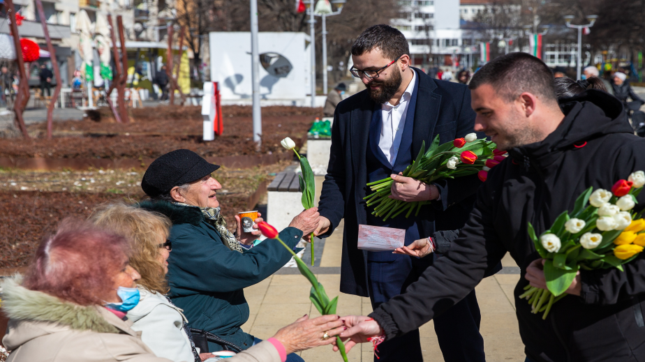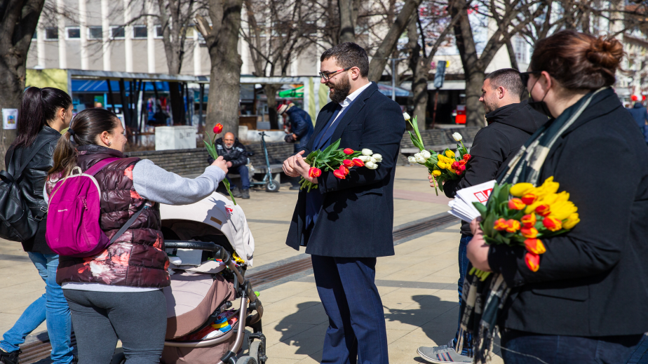 Мирчев и четвъртият в листата - председателят на Младежкото обединение Станислав Павлов - се разходиха из центъра на града и подариха цветя на преминаващите дами. По-късно народният представител от левицата се включи и в акцията на младите социалисти за раздаване на предизборните материали на партията.