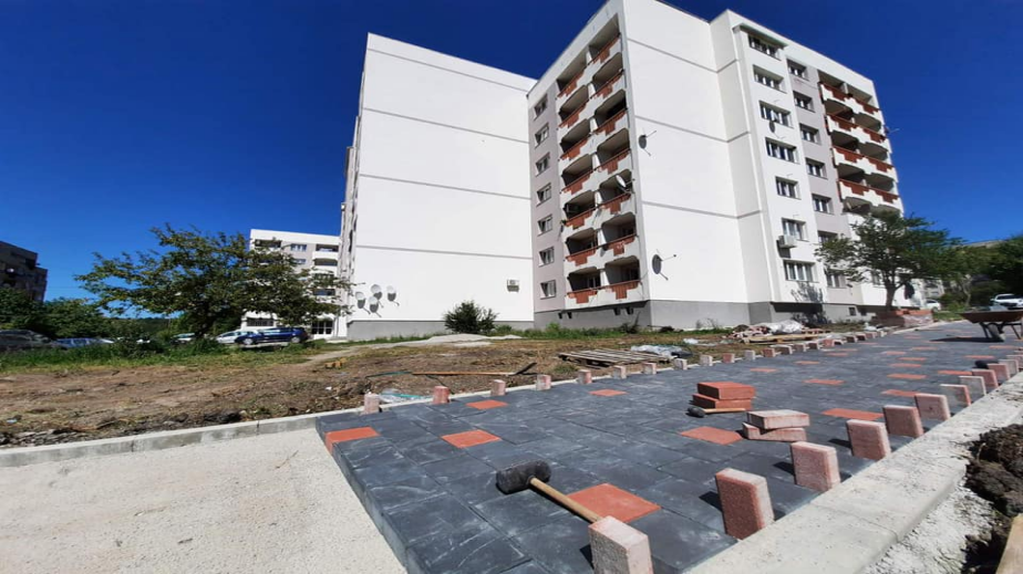 Две нови пешеходни алеи се изграждат в кв. "Тева". Настилката ще бъде изградена от високоустойчиви плочи с дебелина осем сантиметра.
