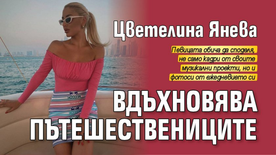 Интересни снимки, стилна визия и красиви гледки радват последователите на Цветелина Янева в мрежата. Певицата обича да споделя, не само кадри от своите музикални проекти, но и фотоси от ежедневието си, пътуванията и специалните моменти в живота, видя Lupa.bg