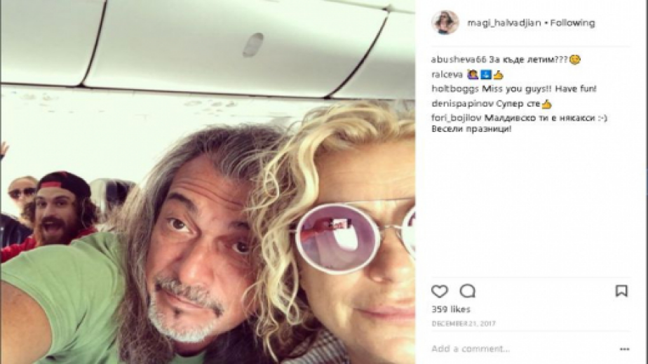 На почивката тя е както със сина си и мъжа си Бебо, така и с родителите му - Маги Халваджиян и Кремена. Продуцентът явно е решил да си отпочине добре преди стартирането на новия сезон на "Като две капки вода" и комедийния сериал "Полицаите от края на града".