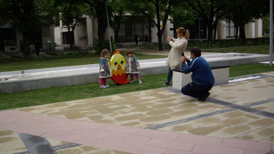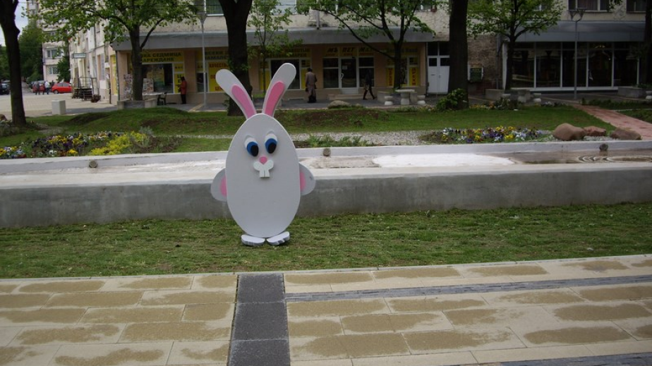 От днес по алеята на ларгото в центъра на Перник са поставени пъстроцветни пилета с формата на яйца и зайчета с големи размери. Те създават празнична атмосфера в очакване на Възкресение Христово.