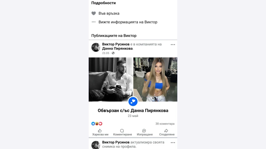 Доста коментари се изписаха и доста вълнение се насъбра покрай двамата, докато се разбере, че това всъщност са фалшиви профили и Виктор не е публикувал нищо. Разбира се, връзката му с Данна също е в сферата на фантазията, поне засега, защото предполагаме, че се познават и това е единственото вярно нещо в тази информация.