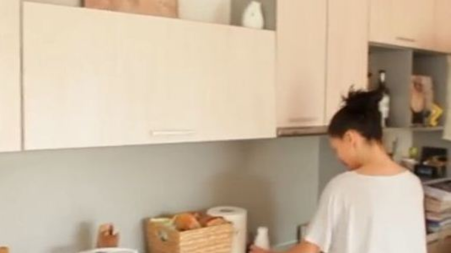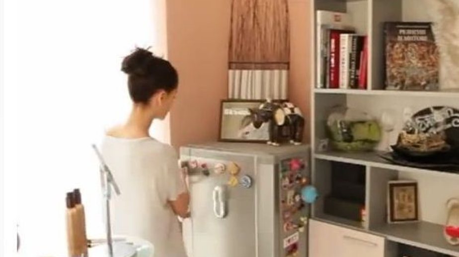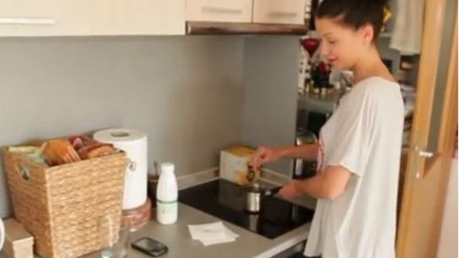 А кухнята на Диляна Попова блести от чистота в унисон с всичко останало. Самотната майка е боядисала скромната по площ гарсониера в светли пастелни тонове, които да създават чувство за пространство.