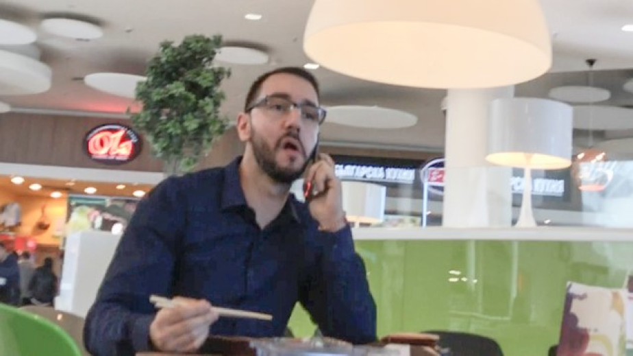 Хекимян няма притеснения и за хигиената в тоалетната на мола, защото докато си върши работата е оставил току-що взетата от популярен бутик покупка директно на земята. Все пак няма да я ползва той – става дума за дамска чанта на популярна марка, която избра грижливо, преди да посети тоалетната.