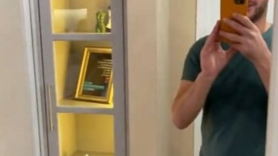 В апартамента Сашко си е оборудвам геймърски кът, става ясно от краткото клипче, което качи в социалната мрежа. Вижда се, че дневната е много просторна. В коридора пък има специална витрина, украсена с някои от ароматните произведения на Чоева./Източник: Лупа.бг