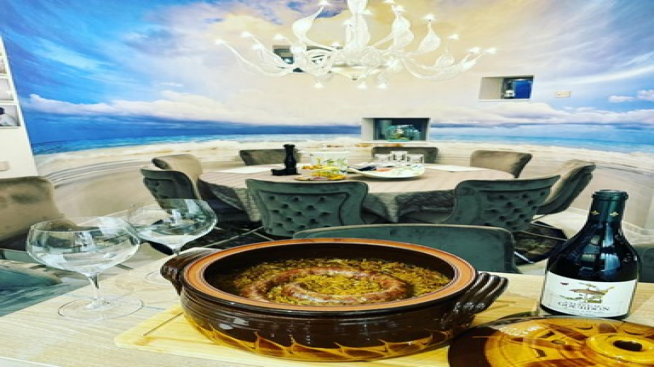 На фона на фототапетчето тя показва лъскави прибори, посуди и свещници, а също така и още една трапезария с голяма правоъгълна маса и столове, чиито цвят няма нищо общо с цветовата гама наоколо. Абе, гледай и пълней, както се казва.