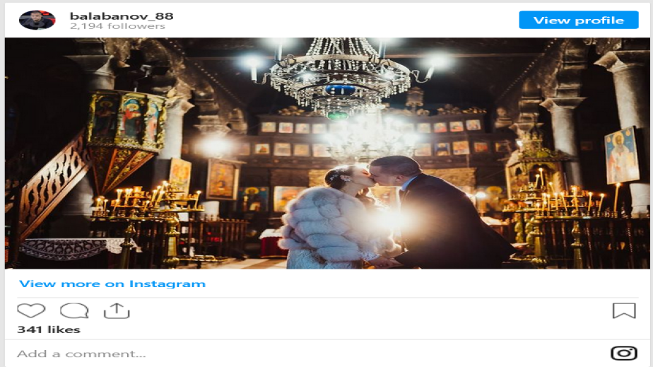 Досега никой не знаеше за връзката между двамата, която завърши с клетва за вечна вярност в началото на година. Певицата е в бяла рокля с фина дантела и прекрасно кожено палто в същия цвят, но без було. Заменят го нежни цветя в косите, докато Балабанов е заложил на класиката-черен костюм. Двамата са си разменили класически халки и са сключили и църковен брак. Не е ясно дали Слави Трифонов е бил сред гостите и дали е танцувал с кокошка, като на сватбата на Тошко Йорданов миналия век.