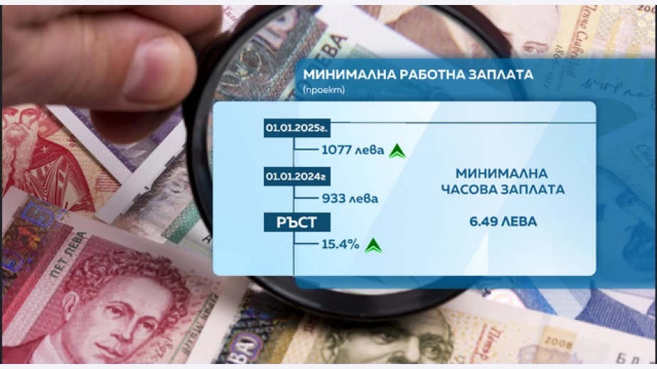 От 1 януари идната година минималната заплата за страната ще бъде 1077 лева вместо досегашните 933 лева, което е ръст от 15%. Това предвижда проект на правителствено постановление, публикуван за обществено обсъждане.