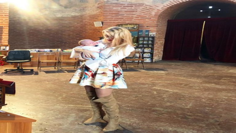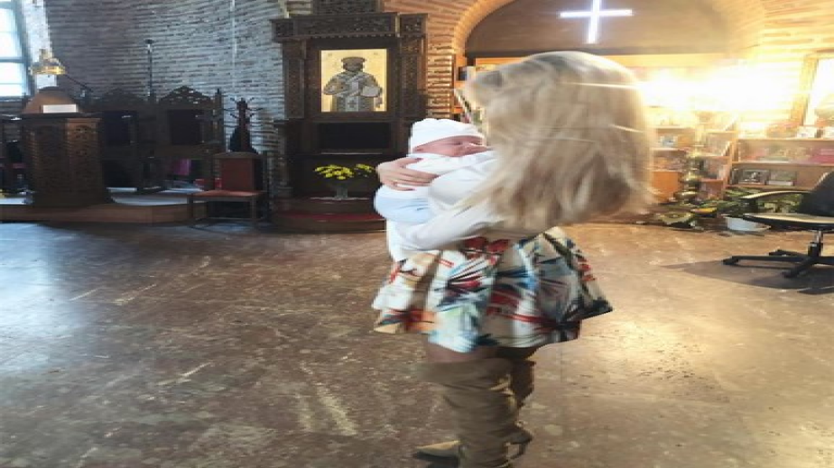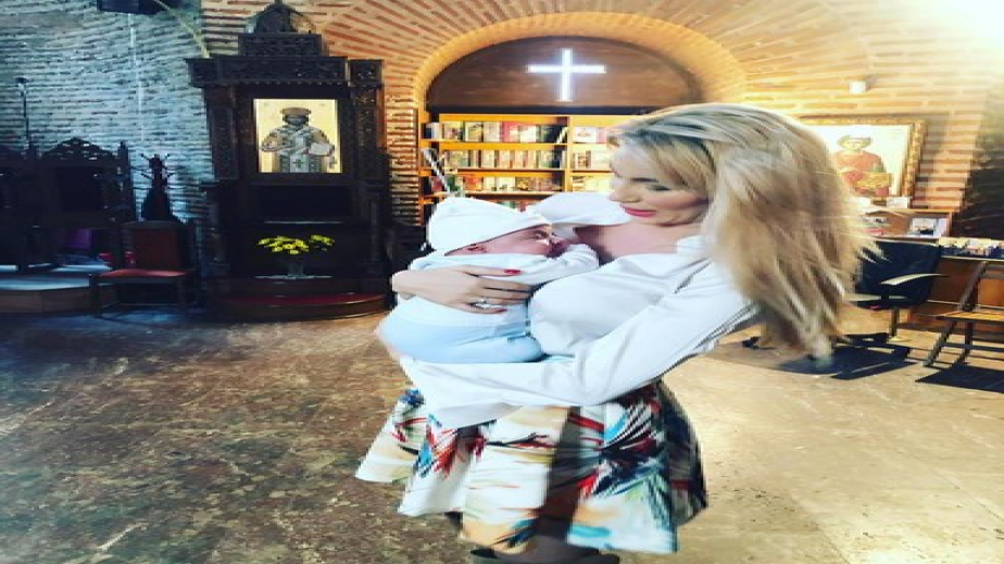 Точно 40 дни след раждането на сина си пернишката миска Антония Петрова – Батинкова го показа. Тя заедно със съпруга си Ивайло заведоха бебока на черква.