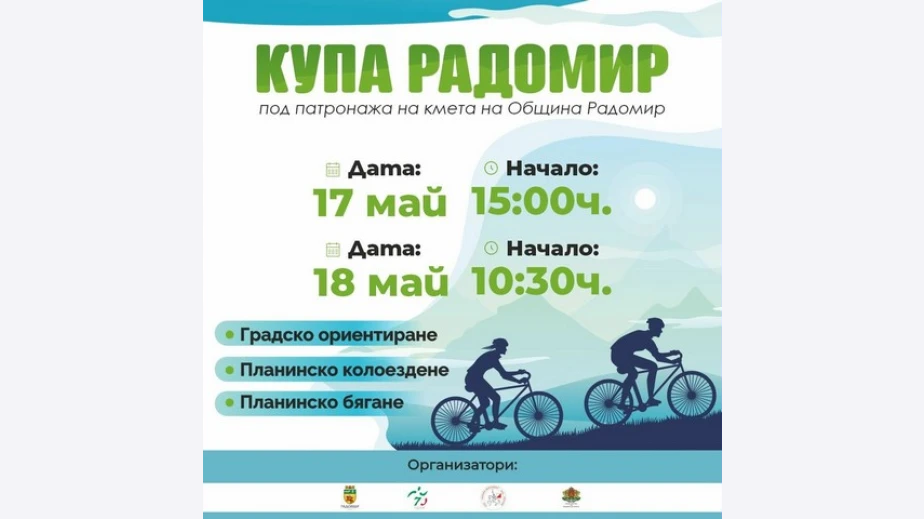 Радомир ще бъде домакин на състезанието по спортно ориентиране и планинско колоездене за Купа „Радомир 2025“. Събитието се провежда за втори път и е под патронажа на кмета Кирил Стоев.