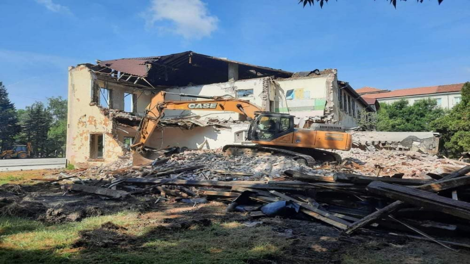 Започна разрушаването на бившата сграда на бившата Гимназия по облекло и туризъм в Перник. Тежка техника рушие сданието, а ул. „радомир% е затворена за движение.