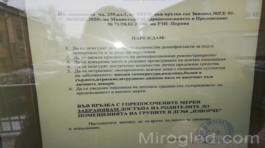 Контролът в детските градини се затяга чувствително заради коронавируса. Част от учебните заведения още днес забраниха достъпа на родители до групите. Мярката се предприема след предписание на РЗИ и заповед от здравното министерство.