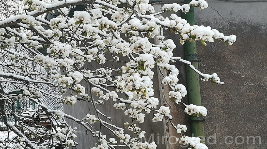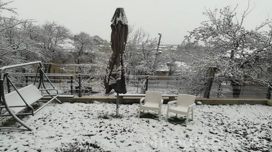 Зимата се завърна на 15 април в Пернишко. Сняг покри цъфналите дръвчета, а на земята се образува покривка от около 2 сантиметра.