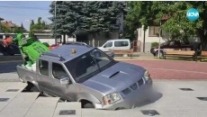 Пикап изпочупи плочки и пропадна в новия шадраван на село Първенец