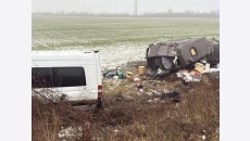 Ад на Подбалканския път: Два буса се преобърнаха в нивата, хвърчат линейки за много ранени