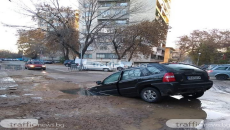 Кола пропадна в огромна яма! Предницата й „изчезна" /Снимка/