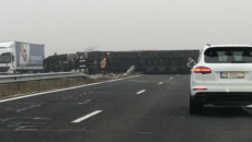 Кошмар на АМ "Тракия", тир се обърна и запречи двете платна! Има пострадали