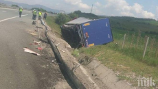 ТИР се обърна на магистрала "Струма" в Пернишко, водачът няма идея какво се е случило