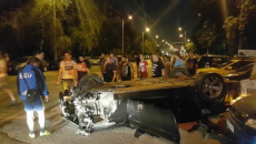 Зрелищно автомеле с 5 коли - разсеян шофьор забърсал 4 паркирани автомобила/Уникални Снимки/