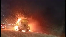 Снегорин изгоря на Северната тангента в София, задръстването е километрично