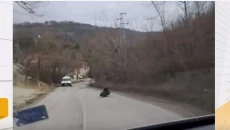 Кретенизъм: Мъж, легнал върху скейтборд, се движи между колите на път във Варненско