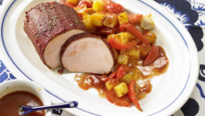 Свинско печено с доматено пюре, чушки и картофи