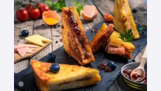 Пържени пълнени филийки с шунка и топено сирене