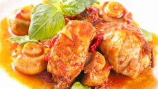 Пиле с червено вино и доматен сос