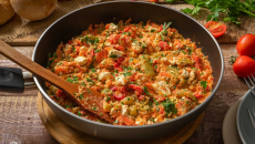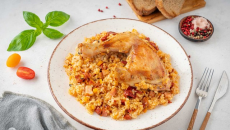 Пиле с ориз, бекон и сушени домати