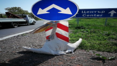 Гавра! Разпънаха розов пеликан на пътен знак