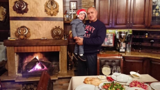 Бойко Борисов и малкият Бойко пред трапезата за Бъдни вечер