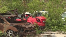 Абитуриенти получават напътствия как да шофират на бала сред смачкани автомобили