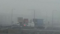 Огромно задръстване от Перник за София, камион провисна от моста на Даскалово