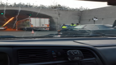 Пиян не спря на стоп палка, заклещи колата в гора, бяга през дере