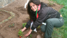 Ученици засадиха теменужки в двора на църквата в Радомир