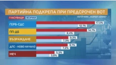 Разликата между ГЕРБ и ПП-ДБ е вече под 3%, ДПС -НН падат на четвърто място