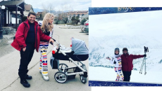 Семейство Батинкови заедно с бебока на ски