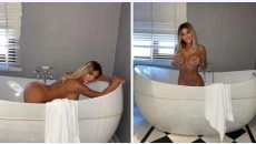 Скандална миска изплува чисто гола от ваната!