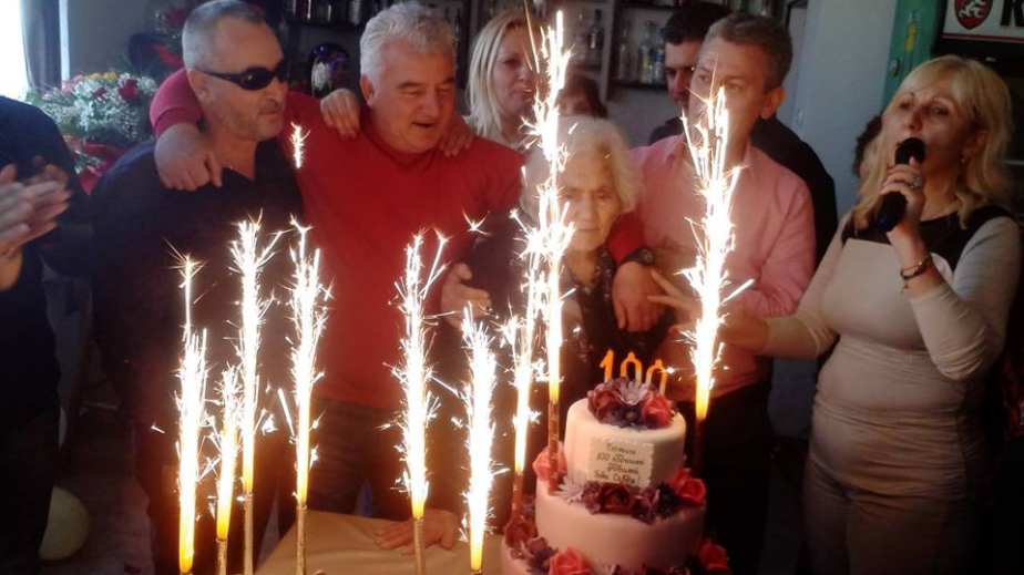 Две дъщери, 8 внука, 6 правнука и 2 праправнука и много роднини вдигнаха наздравици за 100-годишния рожден ден на баба Севда в радомирско заведение. А държеливата старица духна свещите на триетажна торта, още една бе приготвена за всички гости на тържеството.