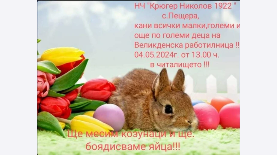 Сто яйца ще боядисат за Великден в земенското село Пещера, съобщи за БТА Стоян Стоянов - организатор "Културни дейности" към Народно читалище "Крюгер Николов 1922 г.".